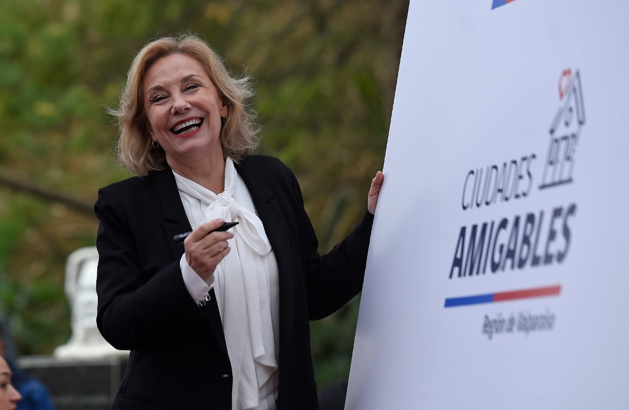 , la primera dama Cecilia Morel, de visita en la región de Valparaíso, y en compañía del Intendente Jorge Martínez y el director nacional de SENAMA, Octavio Vergara, lideró la ceremonia en la Quinta Vergara donde las comunas de la zona se comprometieron a trabajar para que sus ciudades sean amigables con los adultos mayores según los estándares de la Organización Mundial de la Salud.
