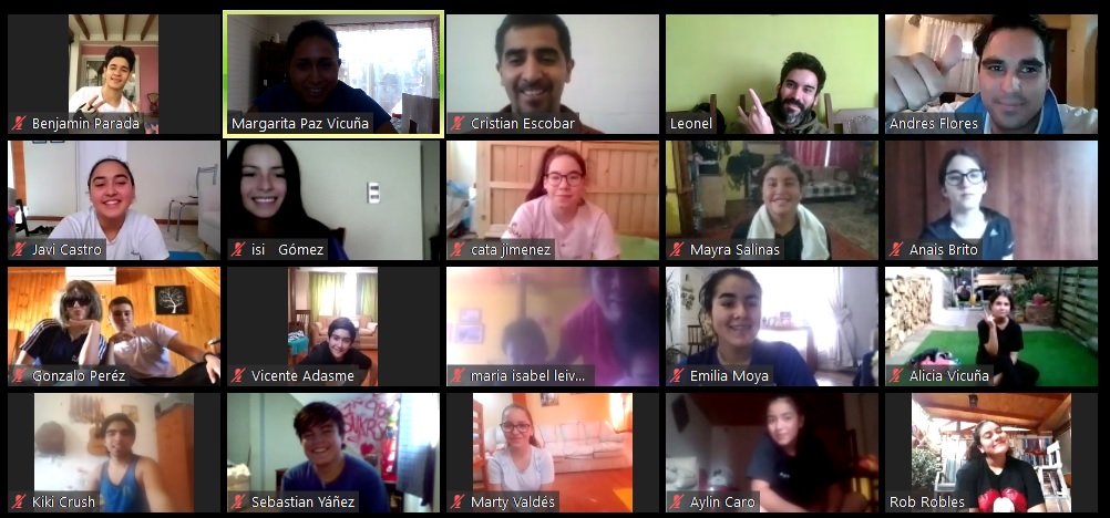 Los sábado por la mañana, jóvenes deportistas se conectan a través de la plataforma Zoom para realizar una rutina de ejercicios rotativa que sugieren los entrenadores de las instituciones convocantes. Participa todo el equipo del Programa “Crecer en Movimiento” del Mindep-IND. Se empezó con 35 y ya van 65 deportistas conectados.