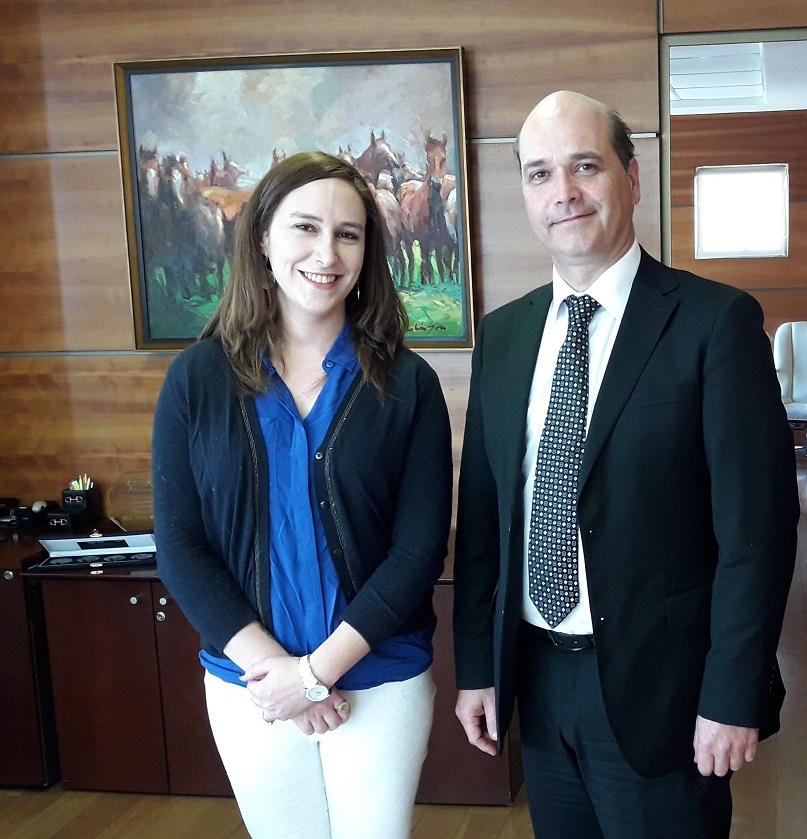La coordinadora regional de SENAMA, Patricia Labra Besserer, presentó sus saludos protocolares al Fiscal Regional del Maule, Julio Contardo Escobar.