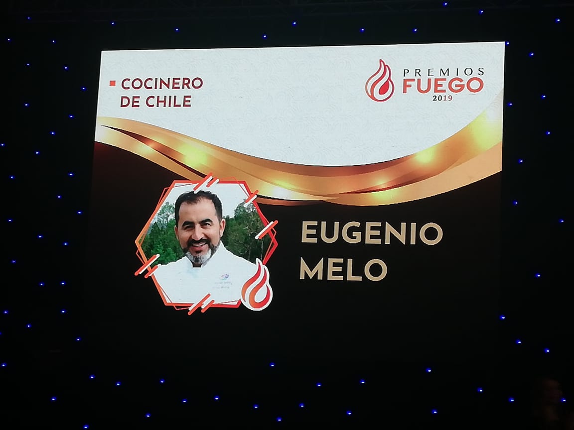 El chef, académico y conductor del programa de televisión “Recomiendo Chile”, Eugenio Melo, fue galardonado como “Cocinero de Chile”, principal categoría de los Premios Fuego 2019, en el marco de la primera jornada de la feria agroalimentaria Espacio Food & Service que se desarrolla hasta este jueves 12 en Espacio Riesco.