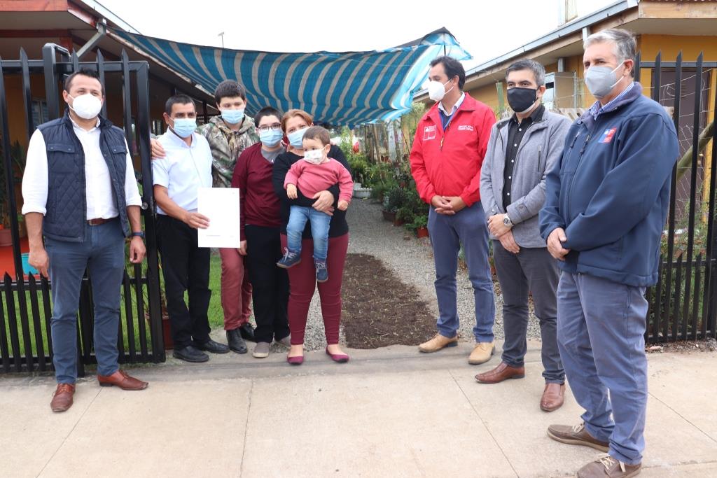 Hasta el sector llegaron el alcalde de la comuna Américo Guajardo, el Seremi (s) de Vivienda y Urbanismo Mauricio Galaz, el director regional (s) de Serviu Claudio Daneck y el concejal Eduardo Poblete, para reunirse con las dirigentes y posteriormente iniciar puerta a puerta la entrega del documento que convierte a las familias, ante la ley, en propietarias de sus viviendas.