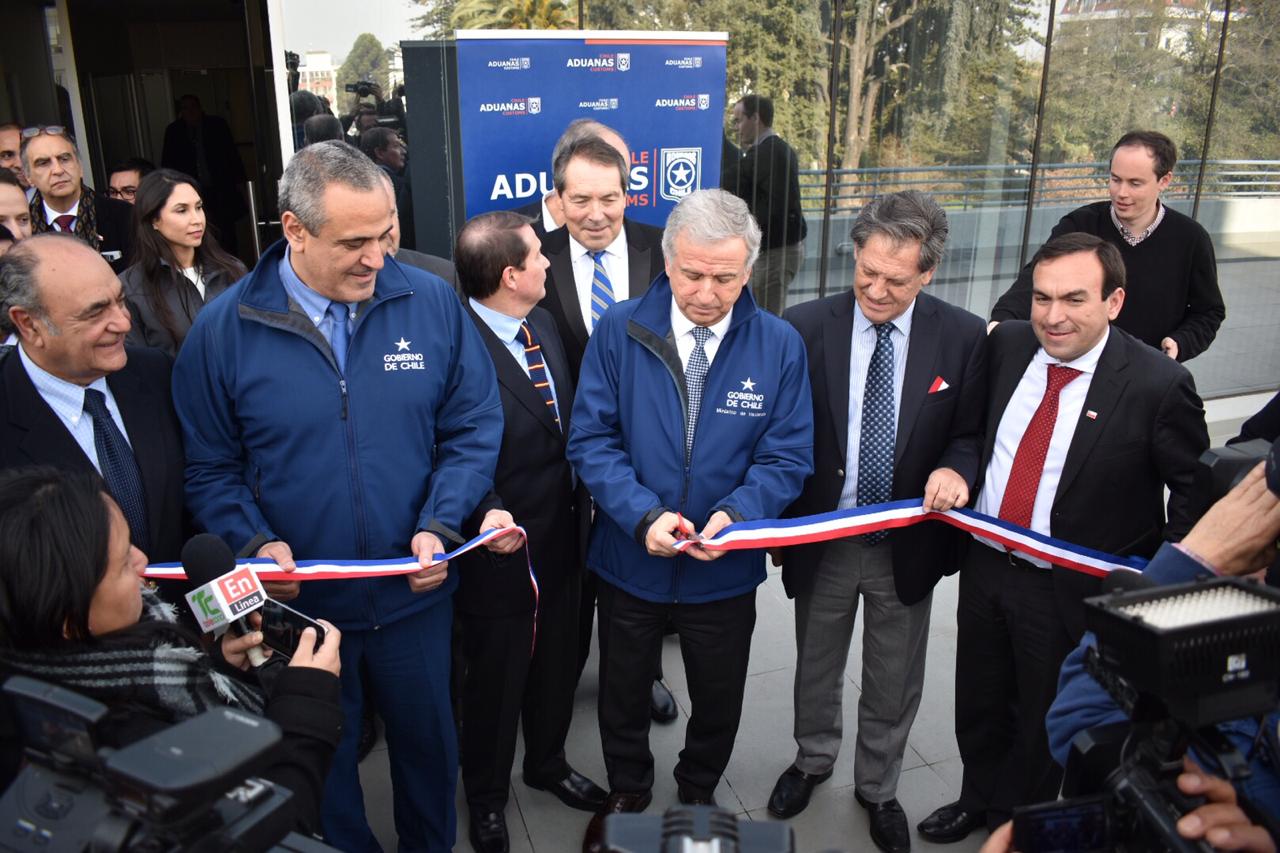 El Ministro de Hacienda, Felipe Larraín, el Intendente de la Región del Maule, Pablo Milad, y el Director Nacional de Aduanas, José Ignacio Palma, junto a otras autoridades regionales, dieron el vamos a este importante proyecto que permitirá agilizar los trámites para exportadores e importadores.