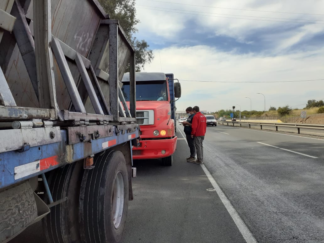El Seremi de Agricultura, Luis Verdejo, y el director regional del SAG, Fernando Pinochet, participaron de un control carretero a camiones de transporte de uva, en el peaje Camarico.
