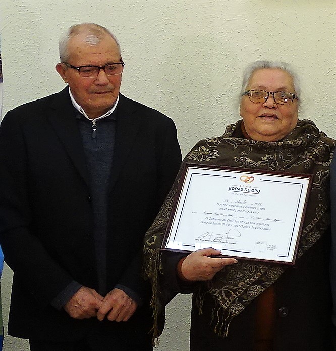 El bono, que se entrega a las parejas que cumplen 50 años de matrimonio junto con otros requisitos legales, fue creado bajo el primer gobierno del presidente Sebastián Piñera, con el propósito de reconocer la vida en familia de muchos adultos mayores en nuestro país.