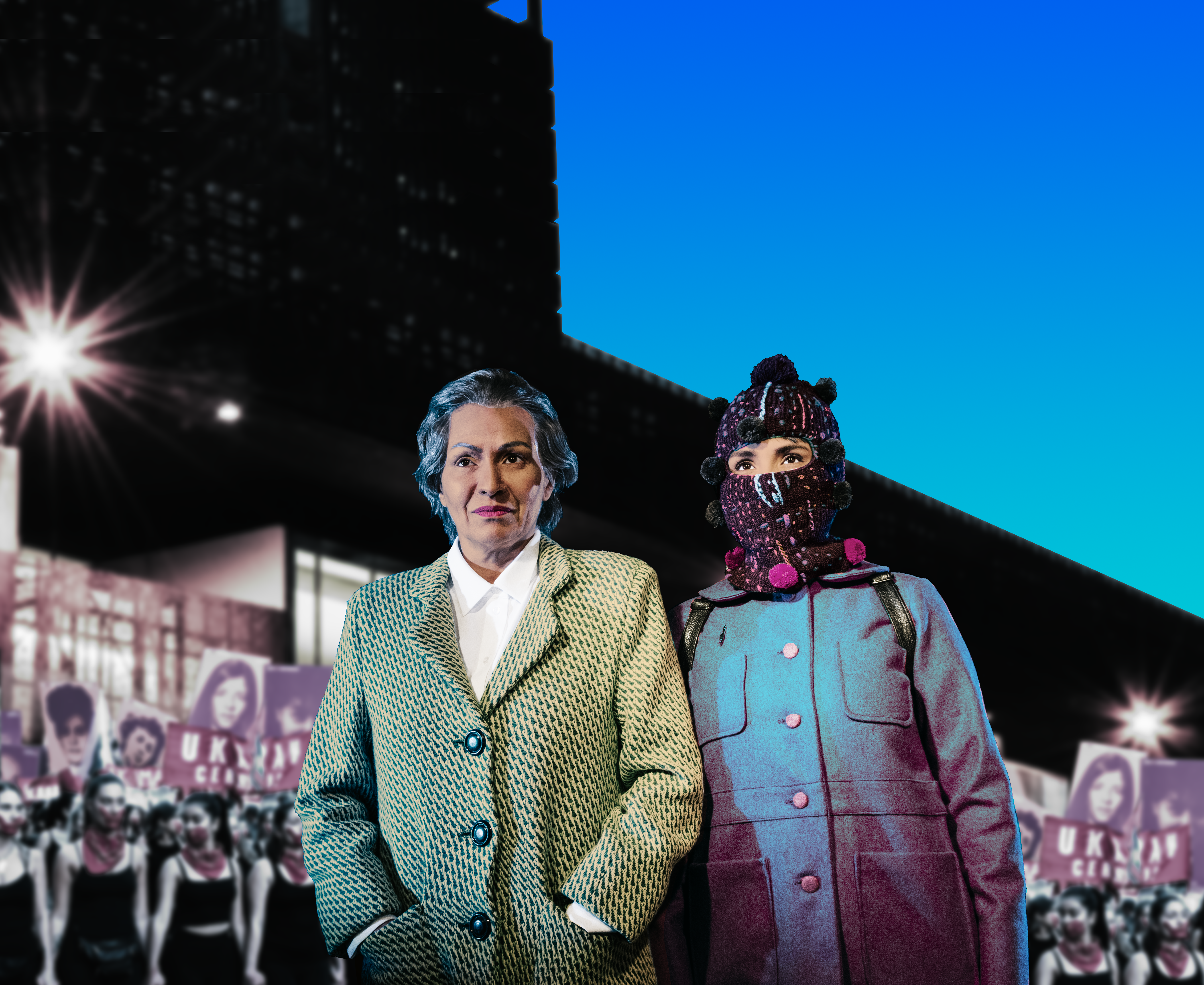 Solange Lackington interpreta a Mistral y Valeria Leyton, a Alicia, líder del movimiento de mujeres que la tiene secuestrada. “Es una conversación entre dos mujeres que discuten de historia y de cómo hacemos historia”, cuenta Aliocha de la Sotta. Desde sus diferentes orígenes, edades y miradas, los personajes discuten sobre muchos temas, basados en la amplitud de tópicos que cruzaron la vida y obra de Mistral, como mujer, intelectual y escritora. Hablan de Latinoamérica, política, feminismo, movimientos sociales, violencia, arte, ecología, fe, amor y más.