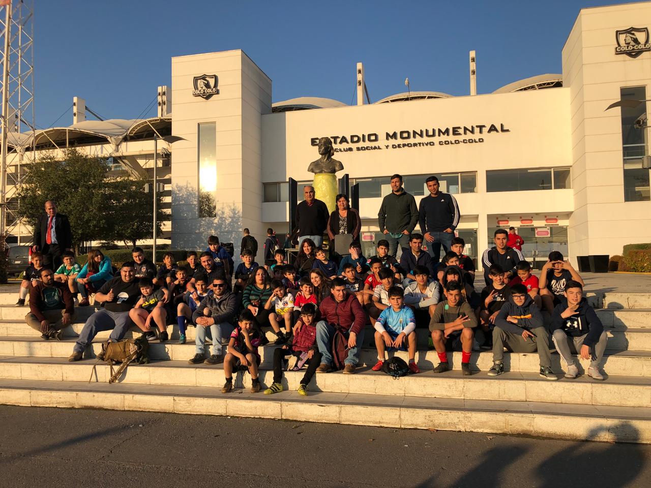 33 niños de Colbún partieron rumbo al estadio Monumental de Colo Colo, con la finalidad de participar en las pruebas masivas que realizó este club profesional, ellos fueron seleccionados en la visoría previa que se llevó a cabo en la comuna y donde participaron más de 300 futbolistas.