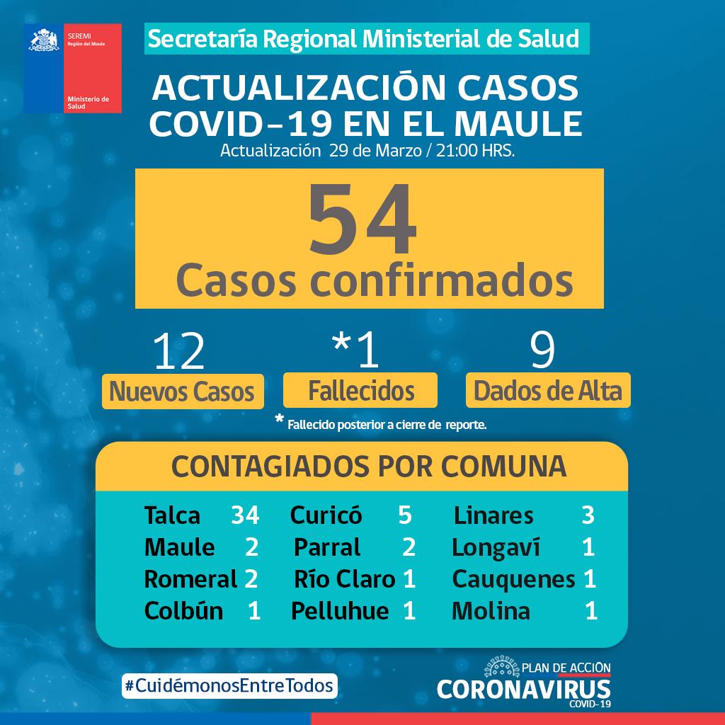 Lamentablemente se confirmó un nuevo fallecido, el octavo en el país y el primero en la región del Maule. De acuerdo a lo informado por al subsecretaria Daza, se trata de una persona en situación de calle de 44 años, que había llegado grave al hospital donde murió a las pocas horas, confirmándose que estaba contagiado con Covid-19.